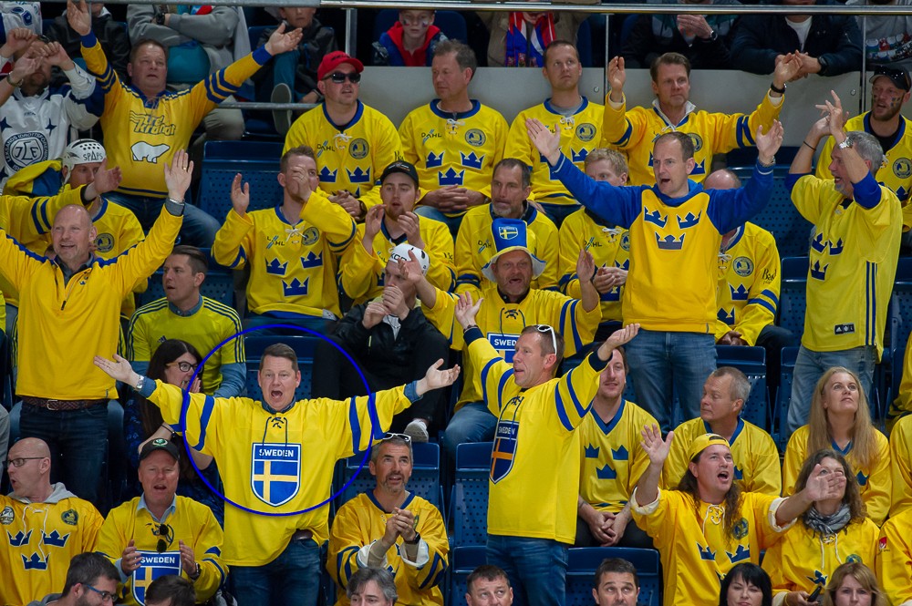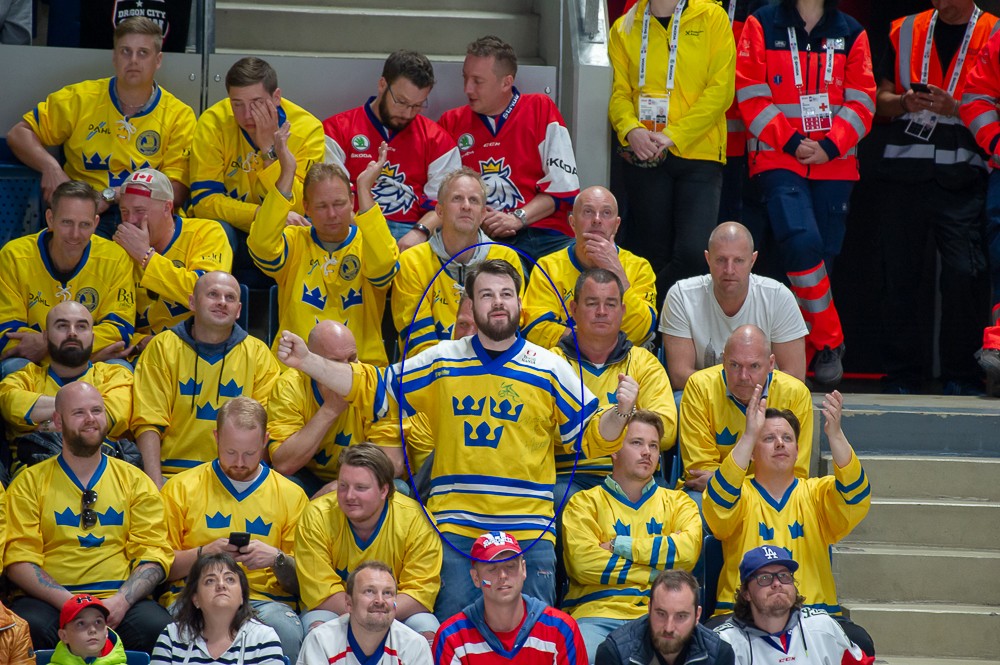 Sverige förlorade mot Tjeckien i premiären, men du kan bli en vinnare. Vår fotograf hittade en del svenska supportrar på plats i arenan. Hitta dig själv och få en chans att vinna en matchtröja.